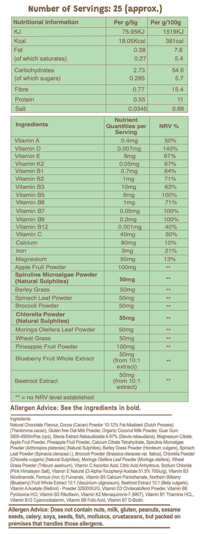 A safe and effective chocolate-flavoured superfood blend for kids, packed with real greens, fruits, vitamins, and minerals to support your child’s healthy growth, focus, and immunity.